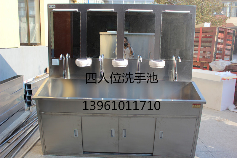 迪新不銹鋼醫用洗手池采用優(yōu)質(zhì)304不銹鋼雙層制作而成,經(jīng)久耐用。槽體設計依據人體工程學(xué)原理,使用舒適。全不銹鋼槽體,整體無(wú)縫設計,極易清潔。紅外感應出水系統配有醫用水龍頭,反應靈敏,抗干擾性強,極大降低了水資源的浪費。自動(dòng)給液器,使用方便衛生。漏電保護設計,保證了操作人的使用安全。槽體中間特殊靜音處理,造型美觀(guān)大方,使用方便?啥ㄖ铺厥庖幐,也可根據客戶(hù)要求配置熱水器和烘干器。